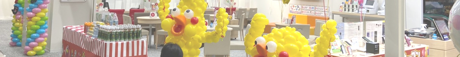 企業のロゴやオリジナルキャラクター、可愛い動物などもバルーンアレンジで対応できます。